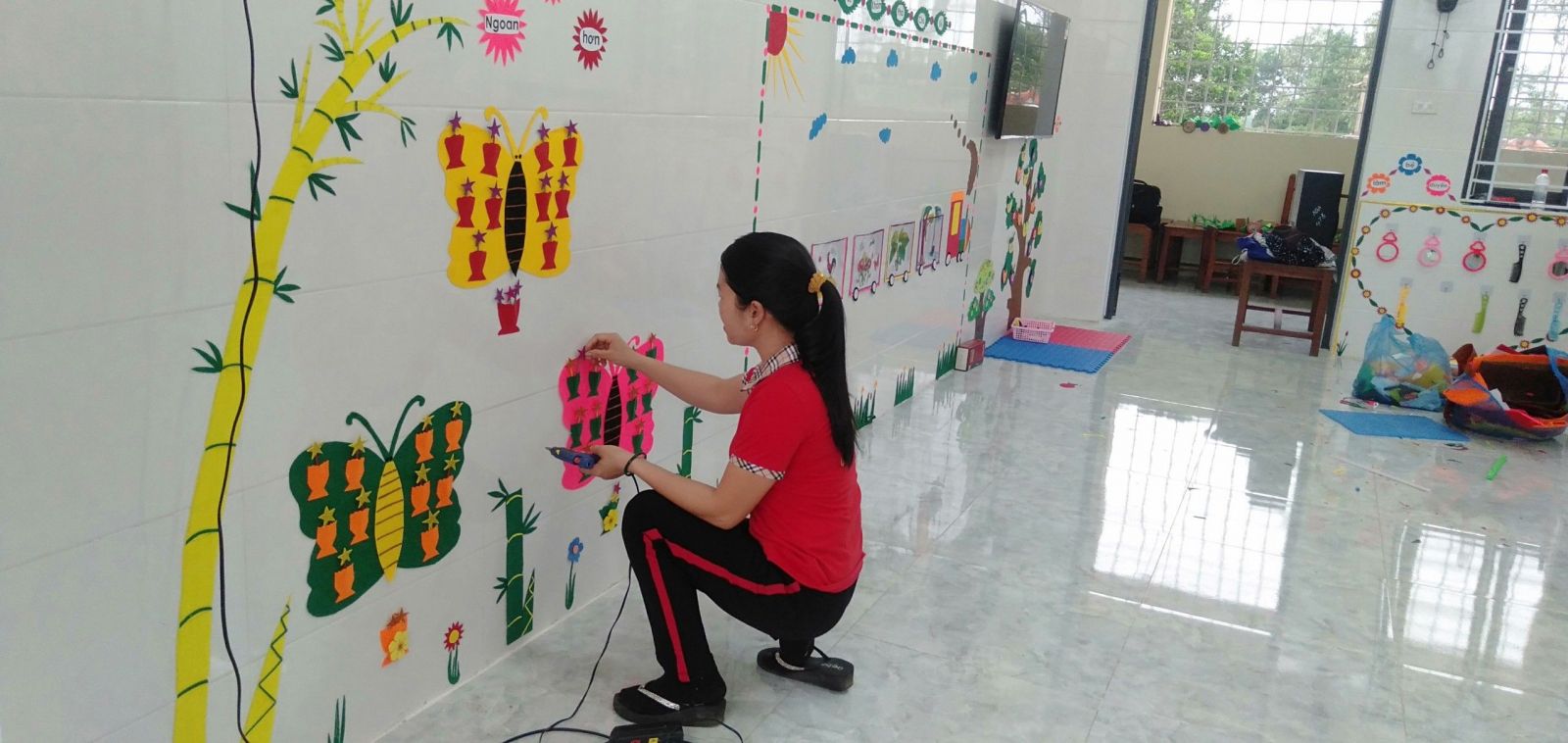 - Để gây hứng thú thì trang trí là một bước rất quan trọng. Khi trang trí cần sử dụng những hình ảnh, vật dụng dễ tiếp cận, phù hợp với lứa tuổi. Bạn hoàn toàn có thể trang trí bằng những vật dụng sẵn có, hoặc sử dụng những vật liệu tái chế như bìa cứng, chai, lọ, dây gai…
