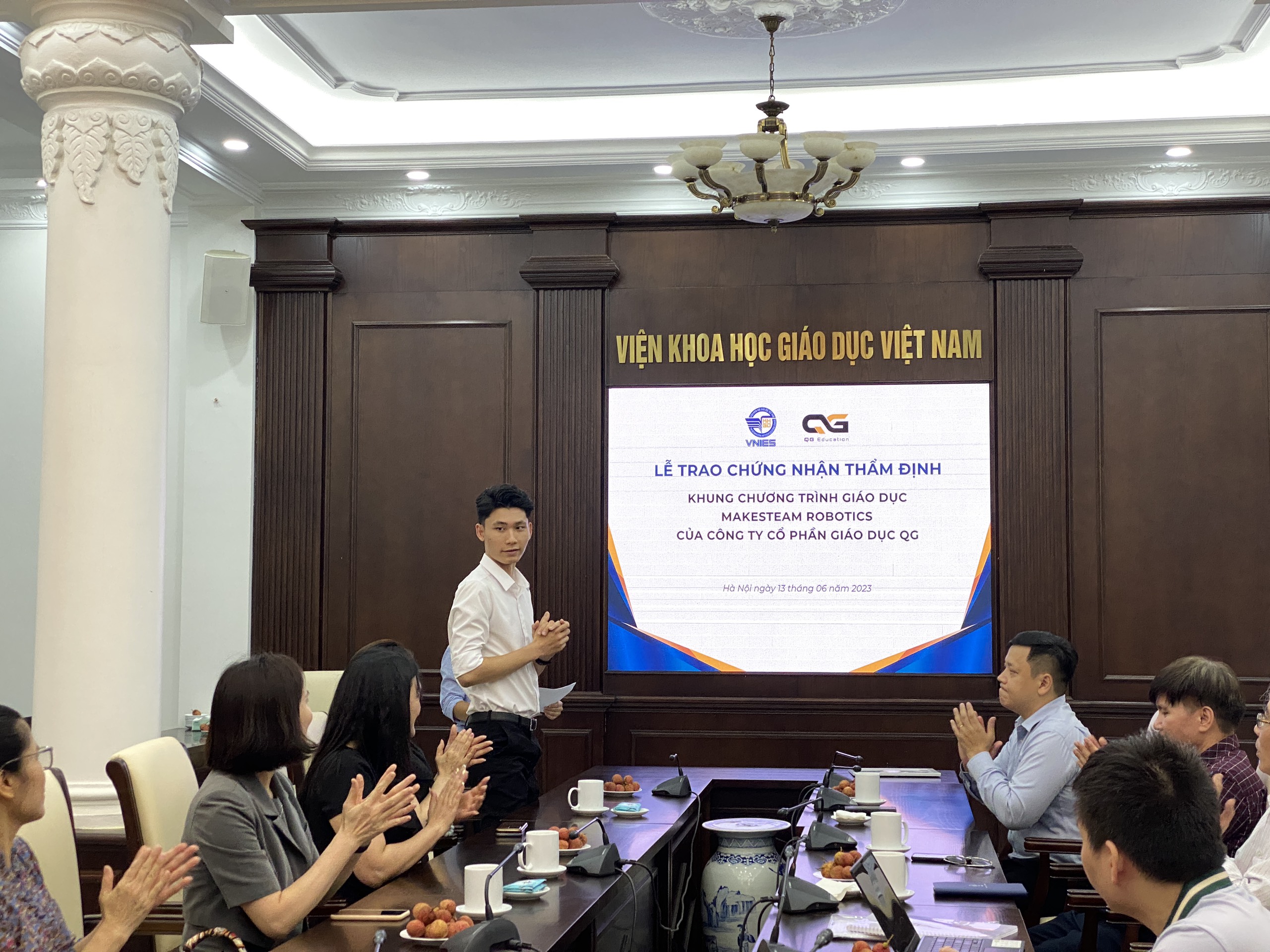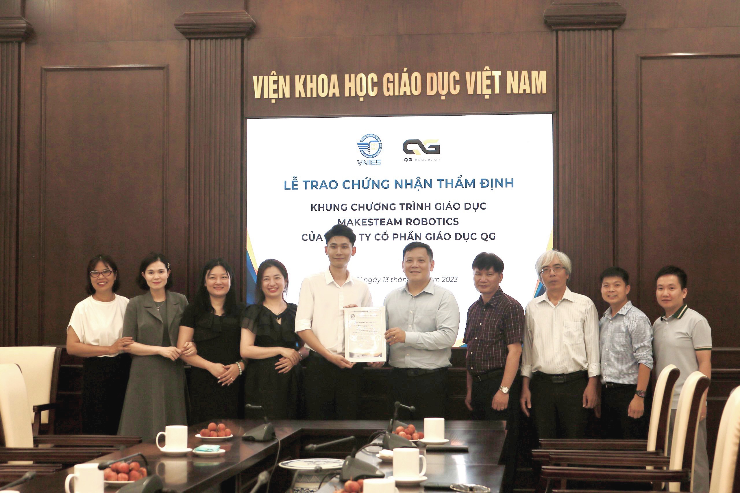 Công ty Cổ phần Giáo dục QG Education đã vinh dự được Giám đốc Viện Khoa học Giáo dục Việt Nam dành nhiều lời khen ngợi. Với thế mạnh về nguồn lực nên trung tâm được đánh giá cao về phát triển bền vững. Chương trình giáo dục của QG Education trong MakeSteam Robotics đáp được đầy đủ điều kiện trao giấy thẩm định và các tiêu chí mà hội đồng thẩm định đề ra. Vì thế, trung tâm chính thức được cấp giấy thẩm định và tiếp tục thực hiện sứ mệnh của mình.