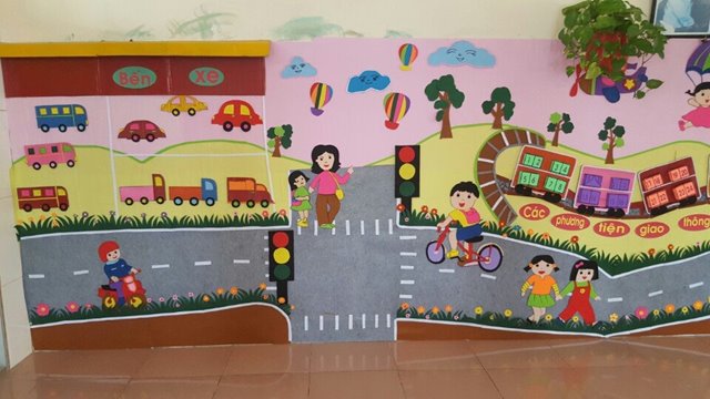 Thông qua chủ đề giao thông, giáo viên có thể hướng dẫn các em trang trí góc học tập phù hợp với bài học. Việc tạo hình sẽ giúp học sinh hướng tới cái đẹp và có nhiều hứng thú hơn trong giờ học.
