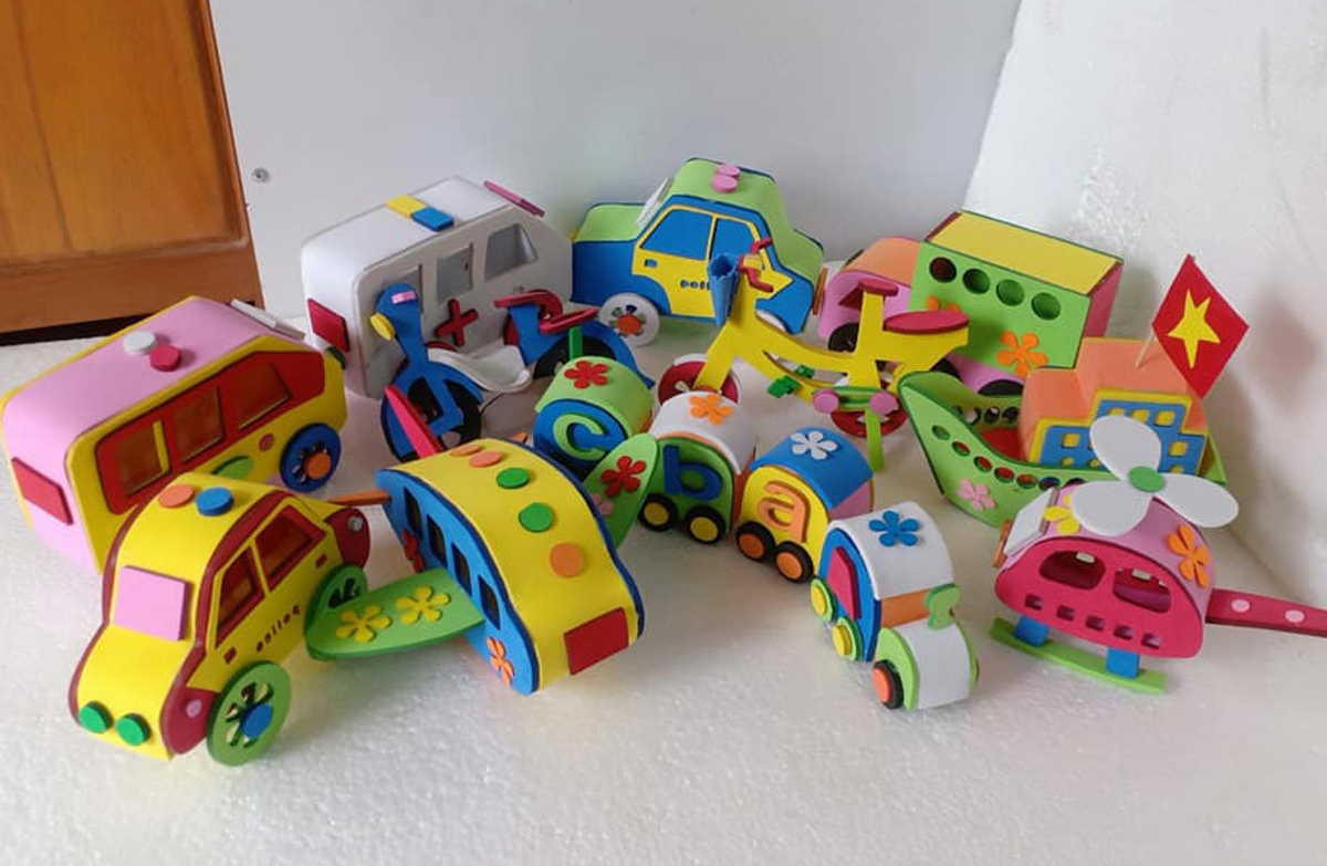 Giáo viên sử dụng vật liệu tái chế, sẵn có để dạy các em biết cách bảo vệ môi trường. Đồng thời, góp phần giúp tiết kiệm chi phí chuẩn bị giáo án.