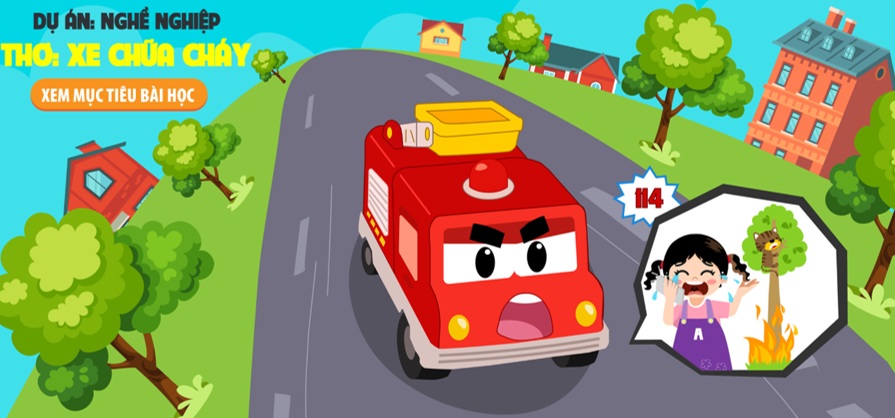 - Trẻ sẽ nhận biết được xe chữa cháy có màu đỏ và hú còi thật to khi di chuyển. Trên xe là các vòi nước dùng dể dập tắt đám cháy.