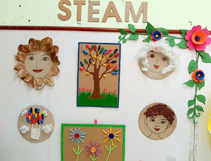 Ngoài ra, cũng có thể khuyến khích trẻ tự tạo đồ dùng đồ chơi, để trang trí góc bé đến lớp STEAM. Khi trẻ được tự tay giúp cô trang trí sẽ thêm phần hứng thú và có niềm đam mê mỗi khi đến lớp.