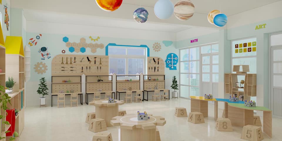 Thiết kế không gian phòng Lab Stem từ bàn ghế cho đến tất cả các vị trí nên được linh hoạt để trẻ thỏa sức tự do sáng tạo những gì mình muốn. Trong mỗi vị trí sẽ được bố trí các giáo cụ sáng tạo giúp trẻ vừa học vừa chơi để kích thích sự ham muốn cũng như nâng cao hiệu quả học tập.