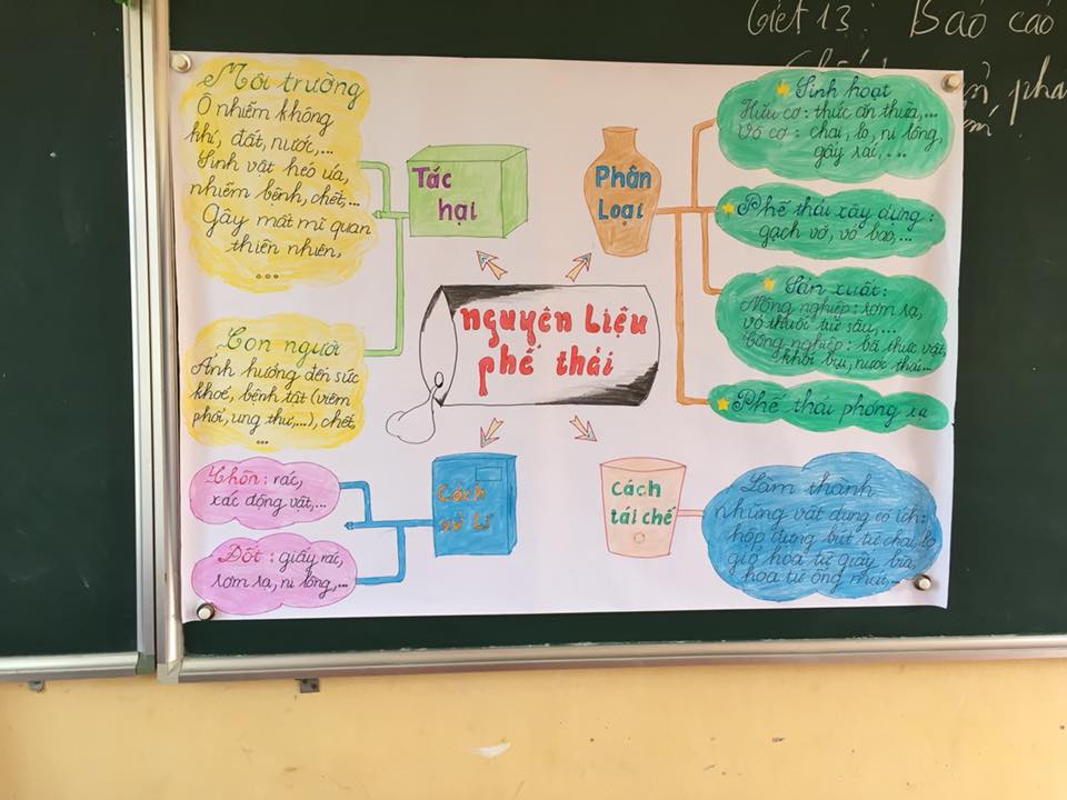 Hoạt động sáng tạo môn gdcd lớp 9 của trường THCS Trung Nghĩa, tỉnh Hưng Yên là không giới hạn. Thông qua chủ đề, các em được trình bày về những loại phế thải phát sinh trong quá trình sinh hoạt hàng ngày.