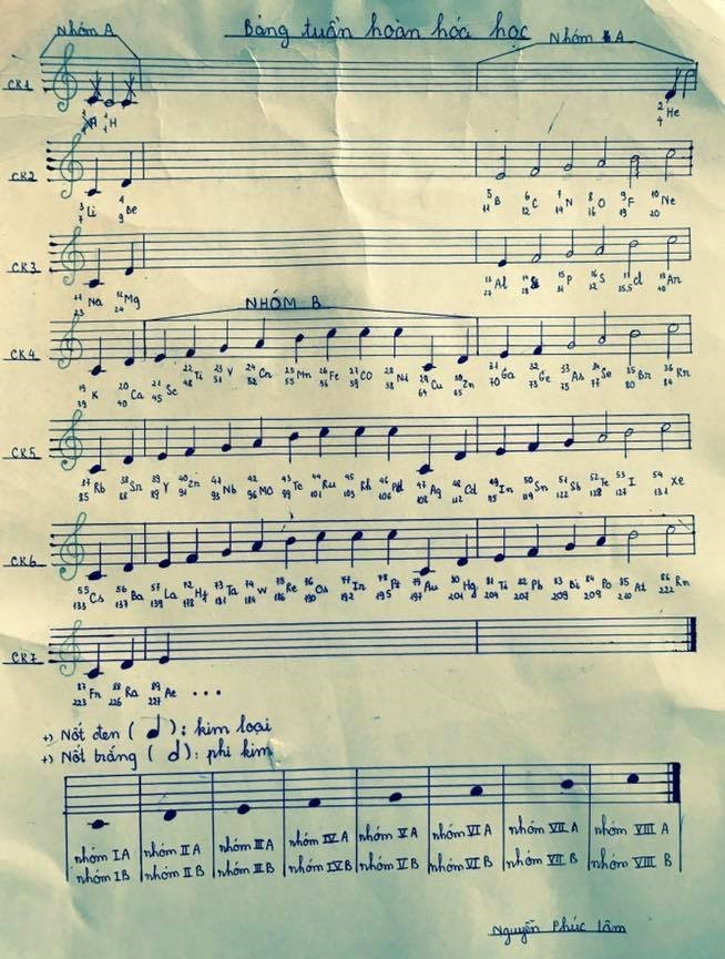Đây là một dạng rất độc đáo, các nốt nhạc được ký hiệu bởi những nguyên tố hóa học khác nhau. Thể hiện sự sáng tạo của học sinh đối với việc tìm hiểu bảng tuần hoàn hóa học.
