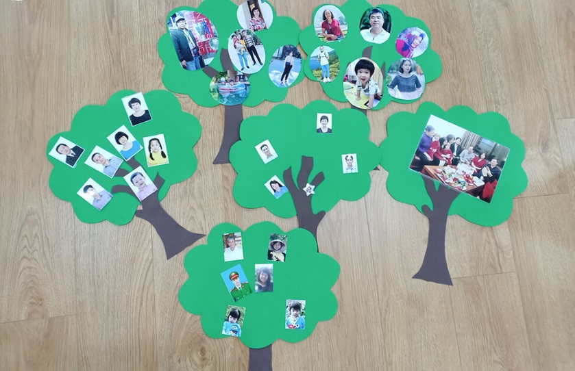 Tiến hành thiết kế và hoàn thiện cây gia đình từ những vật dụng mà cô giáo cung cấp. Bao gồm: Giấy màu, giấy bìa cứng, lõi giấy vệ sinh, que kem…