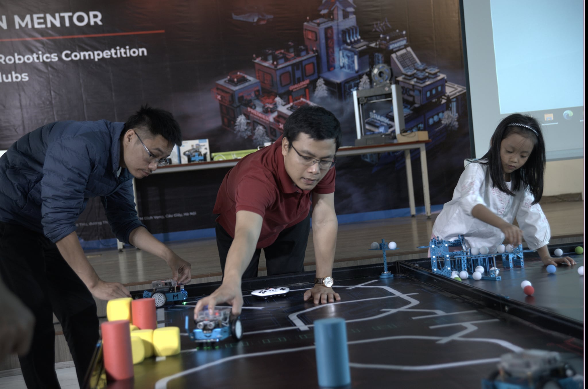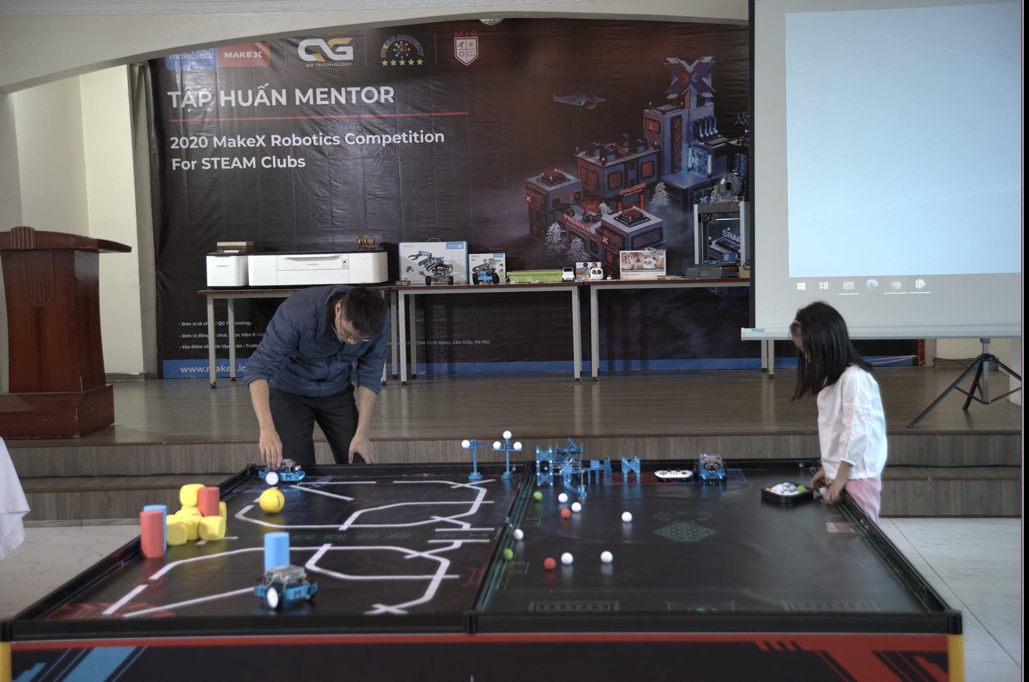 Hình ảnh các bạn nhỏ trong 1 buổi tập huấn với các giáo viên của Makeblock trước khi giải đấu "2020 MAKEX ROBOTTICS COMPETITION FOR STEAM CLUBS " diễn ra.