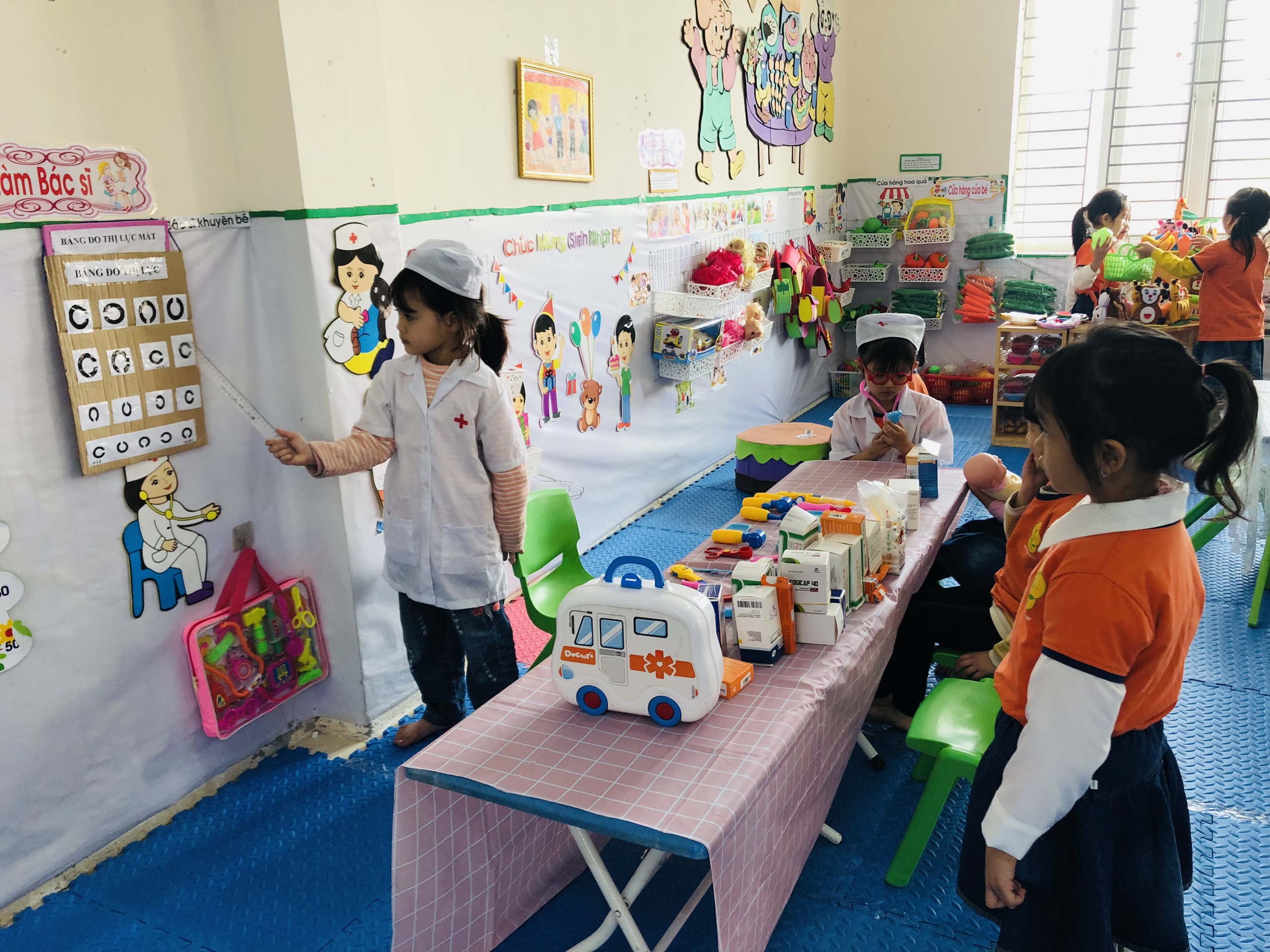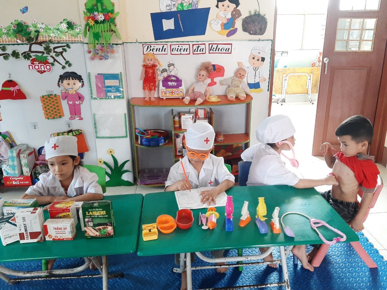 Xây dựng các hoạt động giả lập cho trẻ đóng vai trò trong ngành y tế như bác sĩ, bệnh nhân. Giáo viên sẽ ở bên để giới thiệu vật dụng và hướng dẫn trẻ cách xử lý các tình huống y tế thông thường nhất.