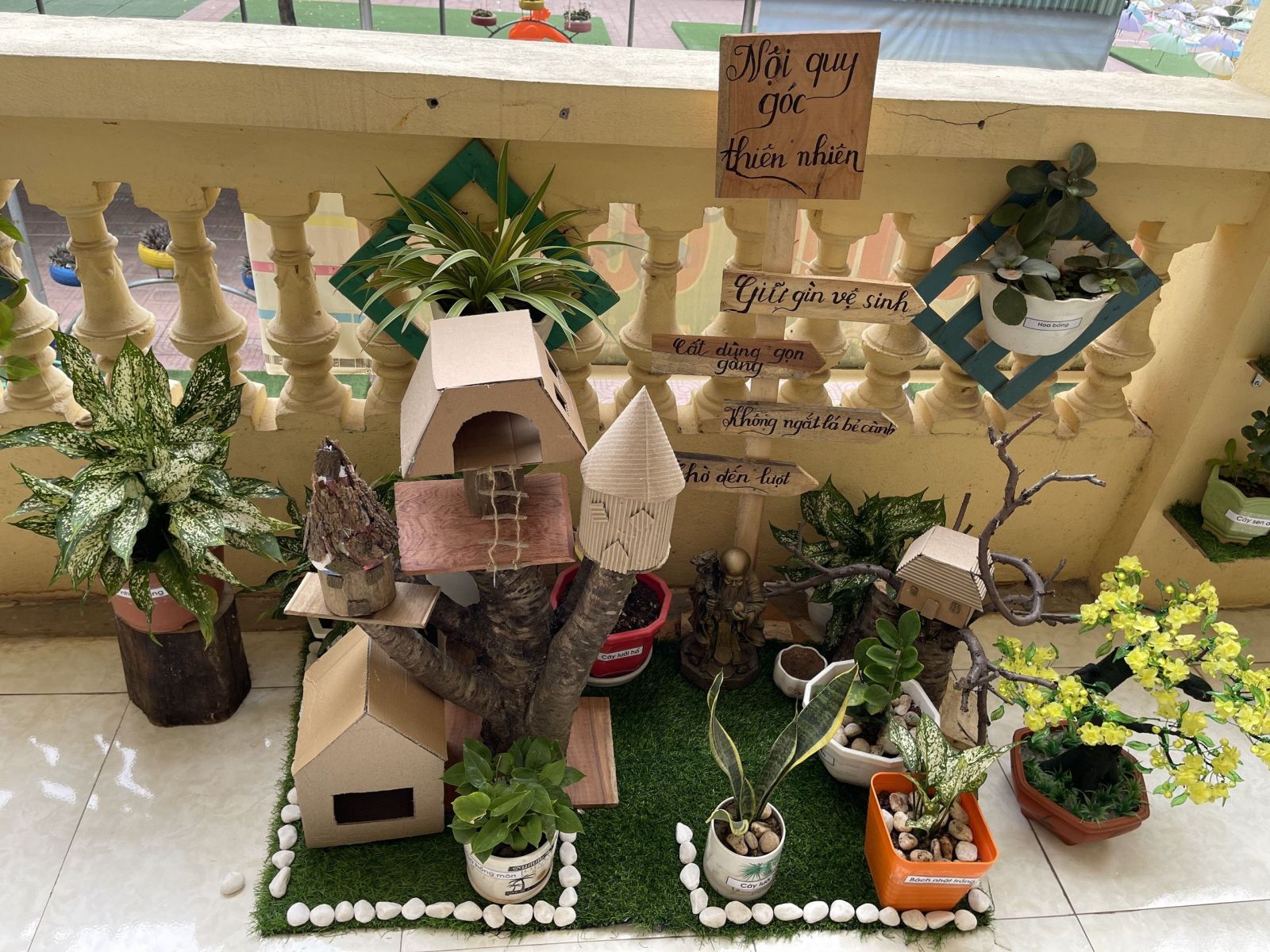 - Bước 1: Lựa chọn không gian: Thường là ngoài hành lang hoặc góc vườn trường.